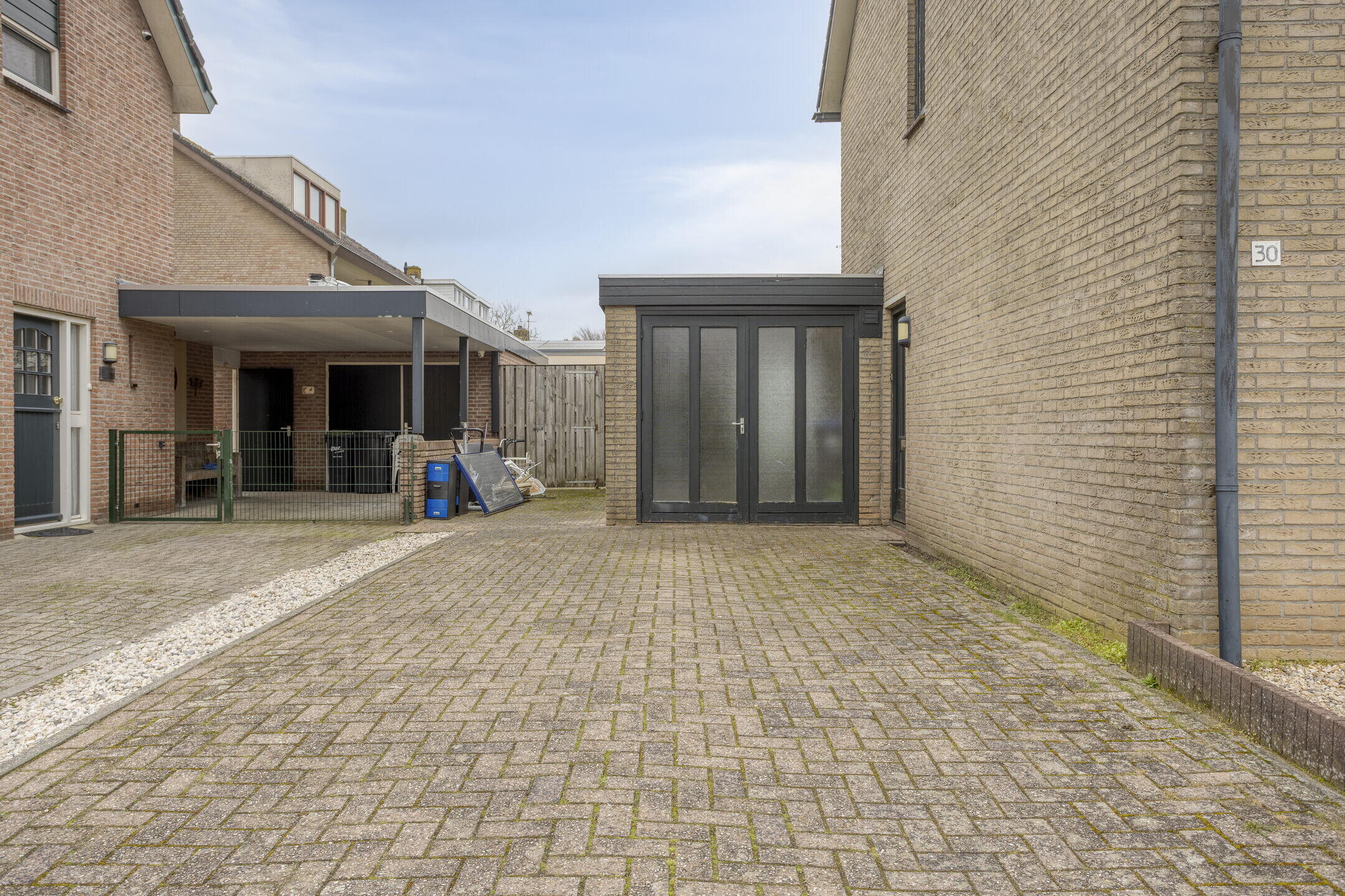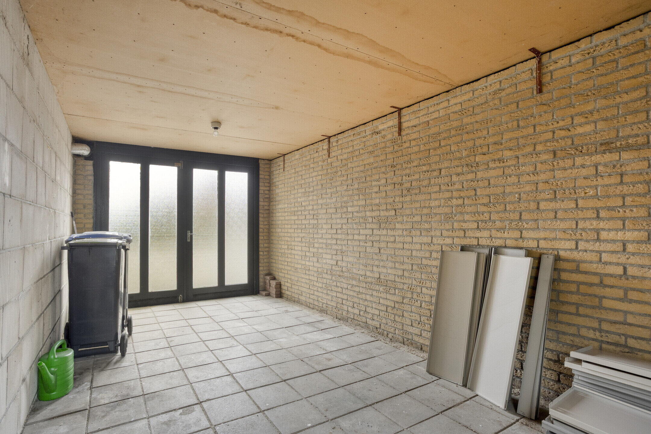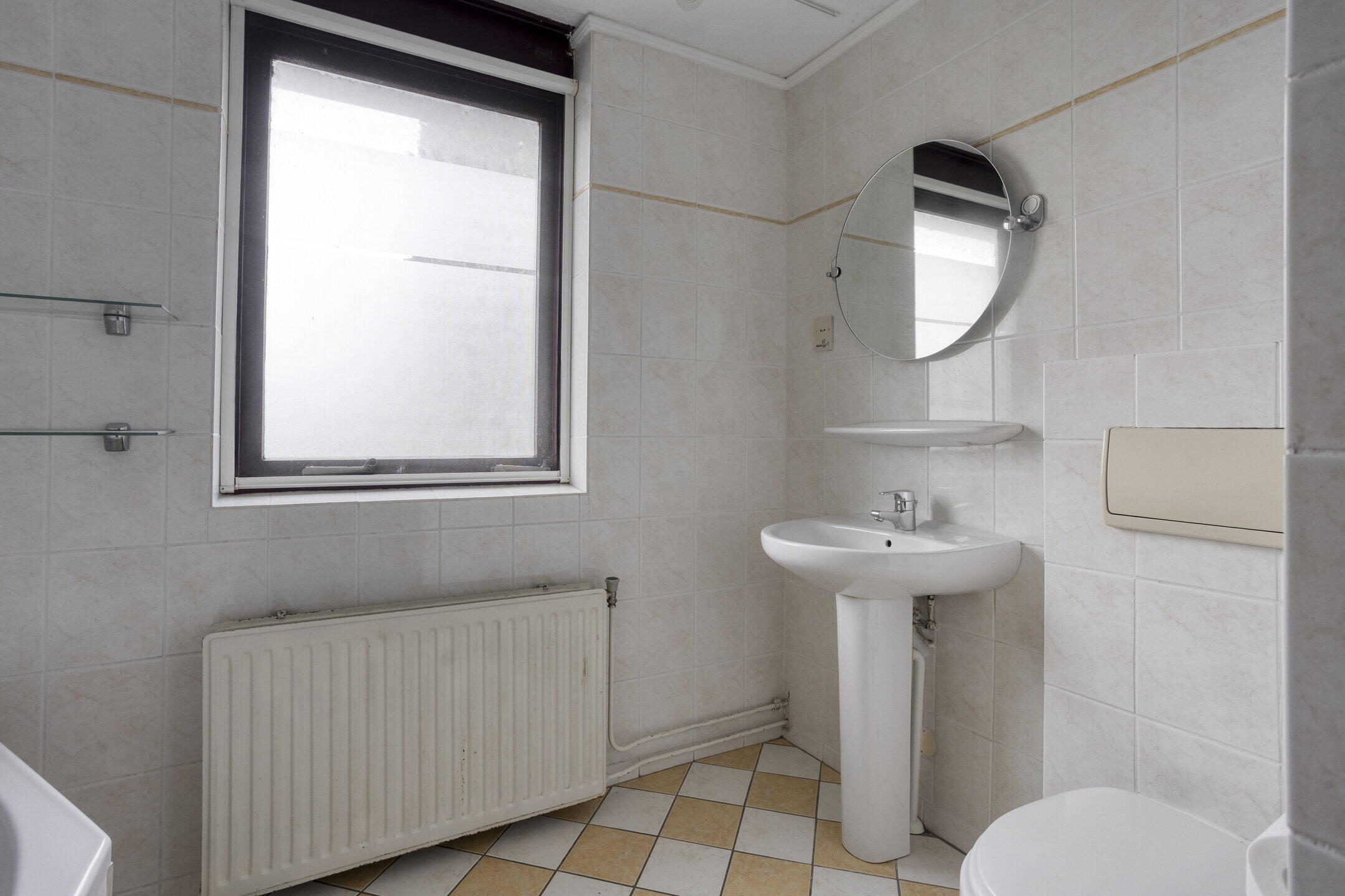 Aansluitend bevindt zich de praktische bijkeuken met witgoedaansluitingen en toegang tot de achtertuin. Vanuit hier is ook de garage binnendoor bereikbaar. De garage is ruim genoeg voor een auto, maar leent zich ook uitstekend voor het creëren van bijvoorbeeld een hobbyruimte, werkplek of uitbreiding van de woonruimte.