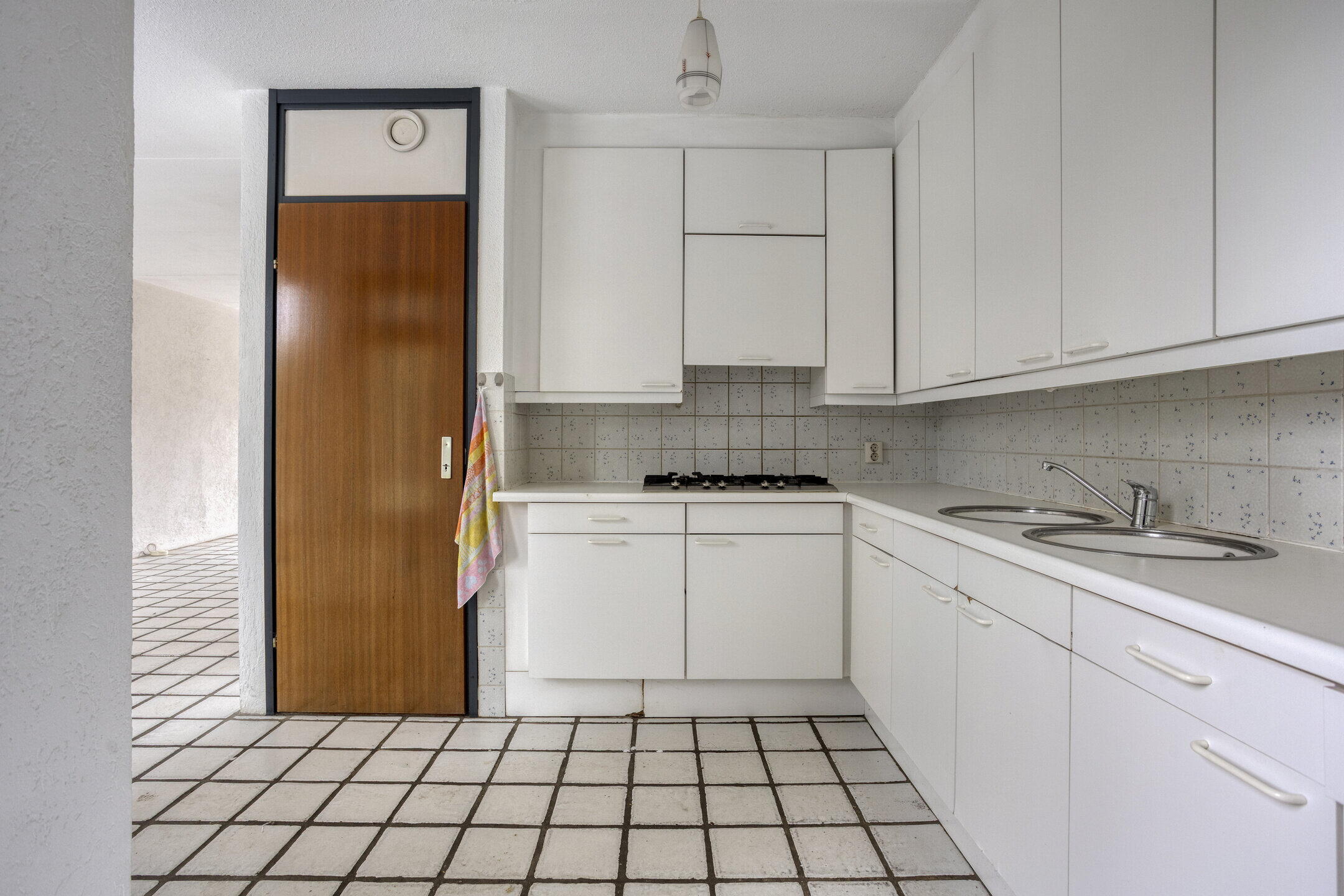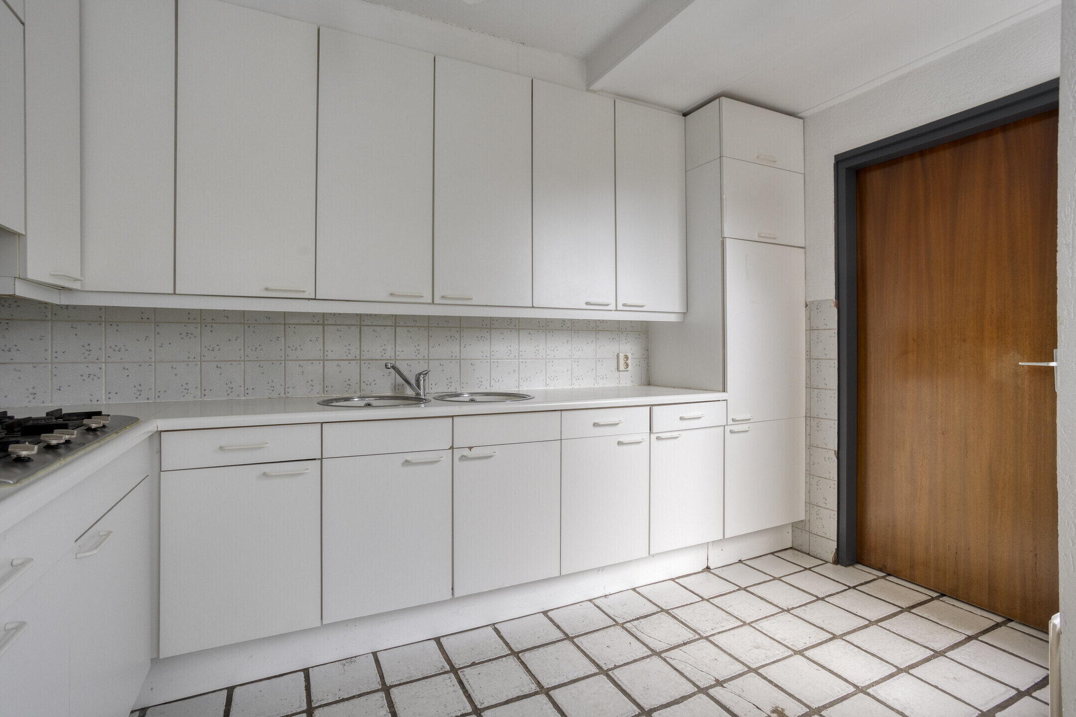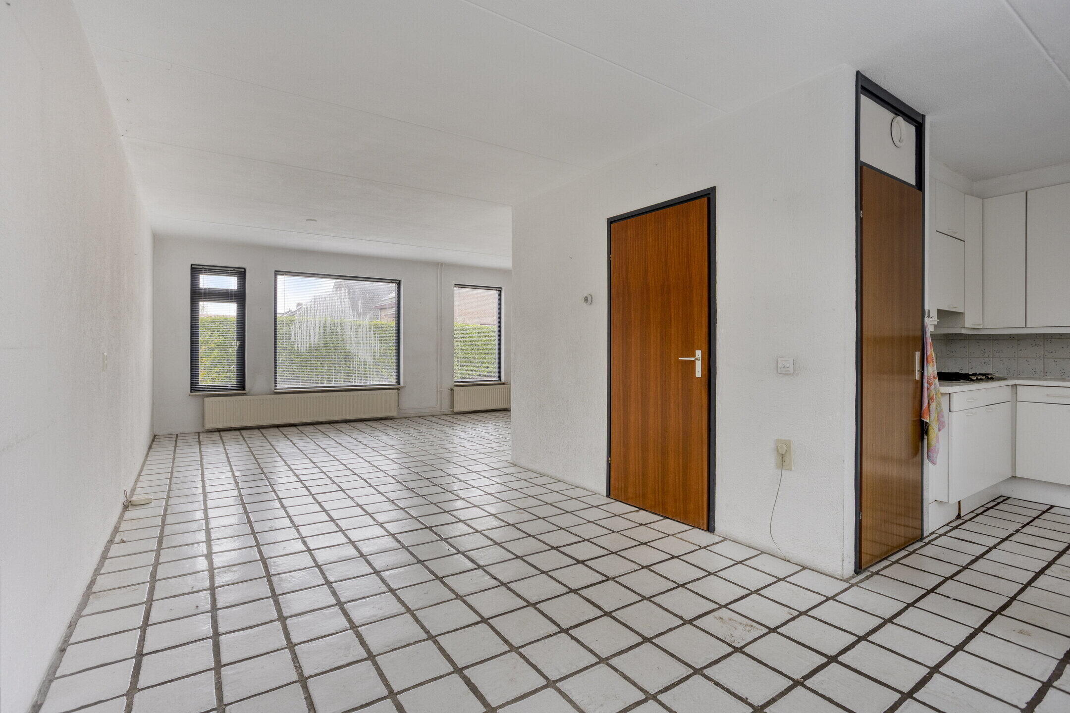 Entree met toiletruimte en fontein, meterkast en toegang tot de woonkamer. De woonkamer is opvallend licht dankzij de grote raampartijen aan de voorzijde en biedt volop ruimte voor een royale zithoek. Door de diepe voortuin en de ligging in het hofje geniet je hier van privacy terwijl je toch prettig naar buiten kijkt. De open keuken is ruim van opzet en biedt volop mogelijkheden voor het realiseren van een moderne woonkeuken. Momenteel voorzien van een riante hoekopstelling en veel lichtinval.