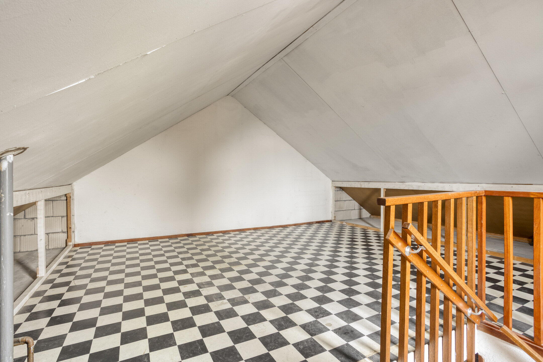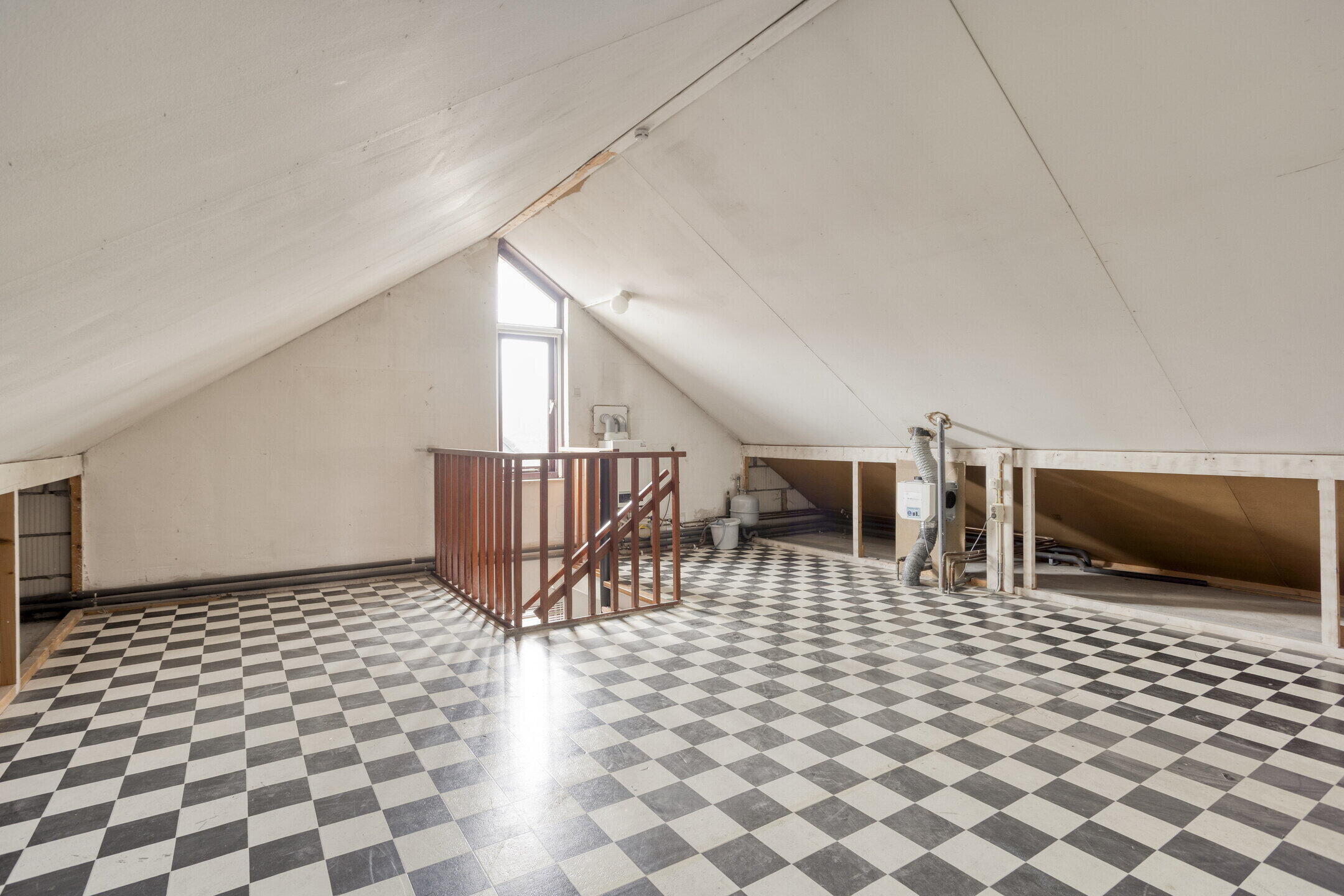 Via een vaste trap bereikbare open zolderverdieping met zijraam en opstelling van de cv-ketel (Nefit, 2019, eigendom). Deze verdieping biedt naast veel bergruimte ook uitstekende mogelijkheden voor het realiseren van één of meerdere extra slaapkamers, bijvoorbeeld door het plaatsen van dakramen of een dakkapel. Ook ideaal als hobbyruimte, werkplek of sportruimte.